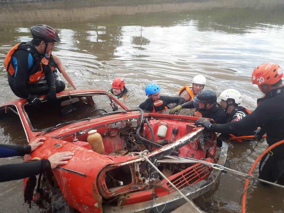 Las pruebas consistieron en trabajar en un auto el 90% sumergido en agua y realizar trabajos de rescate vehicular con herramientas hidráulicas.
