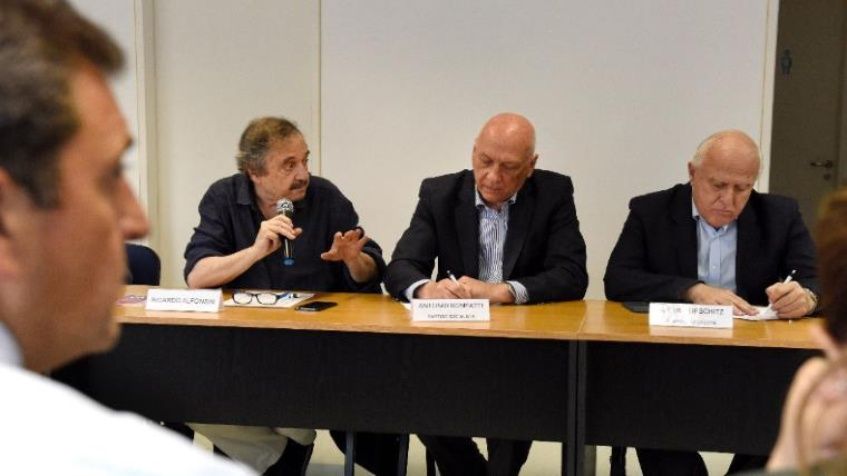 Mucho dejó la foto que este lunes se sacó el presidente del Socialismo, Antonio Bonfatti con el jefe del Frente Renovador, Sergio Massa en el Centro de Estudios Municipales y Provinciales (Cemupro) en Buenos Aires, al lado del gobernador Miguel Lifschitz, la intendenta Mónica Fein, Ricardo Alfonsín y Margarita Stolbizer. “Hay una preocupación enorme por el presente y el futuro, este modelo se va a ir agravando, hay una gran angustia. Esto es lo que nos convoca a quienes integramos polítcos afines. Dijimos que tenemos que asumir una responsabilidad de comenzar una ronda de diálogos que no implique un frente electoral”, indicó y reveló que en los próximos días mantendrán acercamientos con organizaciones sociales, Iglesia, asociaciones empresarias y sindicatos, entre otros actores. Luego, remarcó que “nadie habla de frentes electorales, pretendemos coincidir en algunos puntos”.