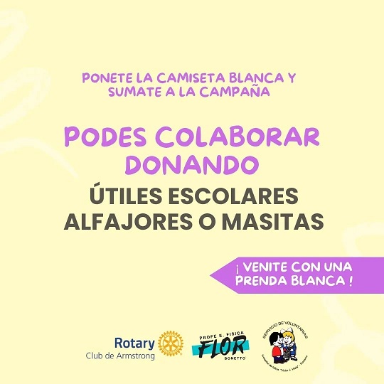 Venite con una prenda blanca. Podés participar y también colaborar trayendo útiles escolares como lápices de colores, fibras, ceritas, hojas en blanco, alfajores, galletitas.
