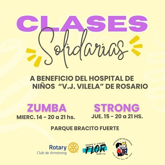 Los invitamos a participar de las clases solidarias de ZUMBA: miércoles 14/02 de 20 a 21 hs y STRONG: jueves 15/02 de 20 a 21 hs, en el Bracito Fuerte, las mismas estarán a cargo de la Prof. Flor Bonetto.