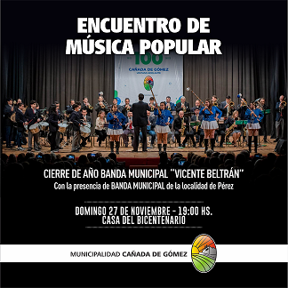 19.00 Hs. Encuentro de Música Popular y Cierre de Año de la Banda Municipal » Vicente Beltrán», en Casa Del Bicentenario