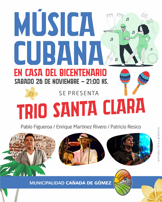 21.00 Hs.  Música Cubana con El Trio Santa Clara – Casa Del Bicentenario.