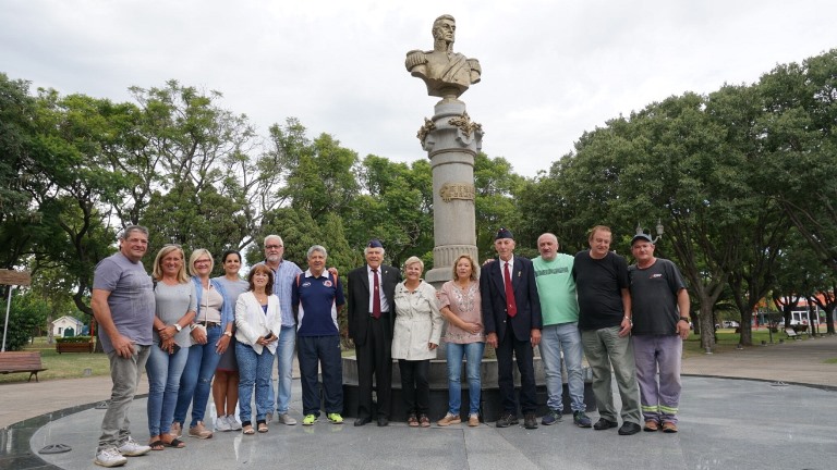 Autoridades municipales junto a Granaderos Reservistas rindieron homenaje en la plaza que lleva su nombre.