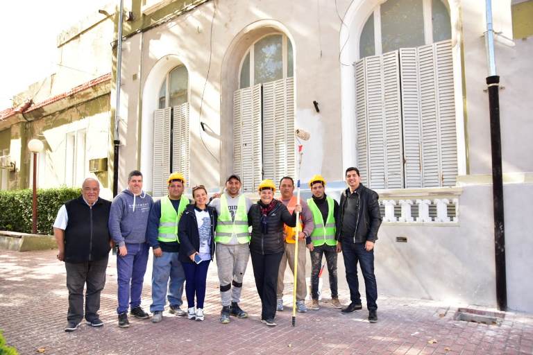 La intendenta Stella Clérici recorrió las mejoras en la fachada del edificio, en estos momentos con tareas de pintura, para continuar con la puesta en valor de este edificio patrimonio cultural e histórico de la ciudad.