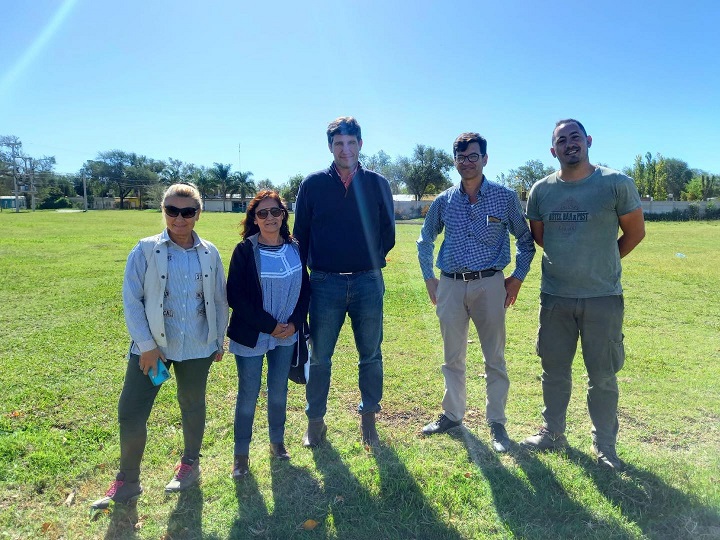 La directora de Arquitectura del Municipio, Marcela Fazi, recibió a integrantes de la empresa VFM S.A., adjudicada por el gobierno provincial para la construcción del edificio propio del Jardín de Infantes “Barrilete de Colores”, quienes llevaron adelante el reconocimiento y marcación del terreno, donde en los próximos días comenzará la obra.