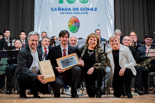 La intendenta Stella Clérici junto al presidente del Concejo, Marcelo Casalegno, y la secretaria de Cultura, Raquel Di Paola, entregaron un reconocimiento al actual director de la Banda Diego Aureli y a quien lo precedió en el cargo, Rubén Beltrán. “Una noche muy emotiva a través de la música que nos permite compartir momentos maravillosos”, expresó Clérici.