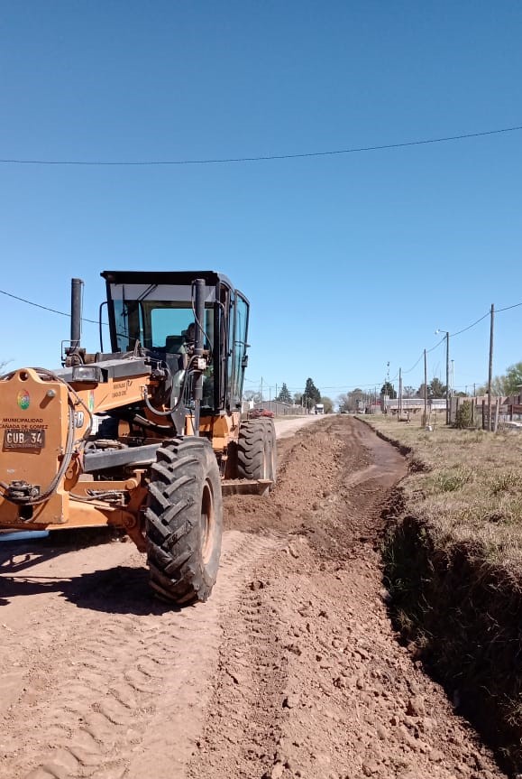 Se realiza escarificando en Capdevila entre Suipacha y Moreno para futuro pavimento y trabajos de mejorado en Guiraldes entre Suipacha y Quintana y Corrientes esquina Suipacha.