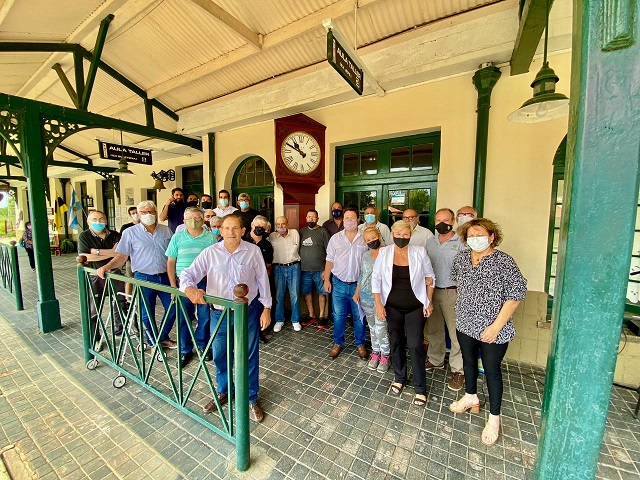 La intendenta Stella Clérici junto a integrantes del Museo Ferroviario pusieron en funcionamiento el reloj restaurado de la estación ferroviaria en el marco de las obras de recuperación del patrimonio ferroviario.