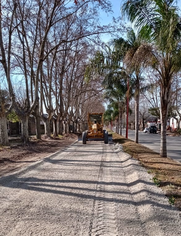 Continuando con el plan de conservación de calles de tierra, el municipio realiza trabajos de mantenimiento con mejorado en Bv. López entre Iriondo y Libertad y simultáneamente colocación de tubos y marcado de cunetas.