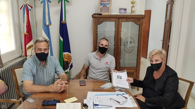 La intendenta Stella Clérici y el presidente del Concejo Marcelo Casalegno recibieron al presidente del club Sarmiento Guillermo Bonci, quien presentó proyecto de obras en el terreno lindero a la institución que se realizarán con acompañamiento de la gestión municipal.