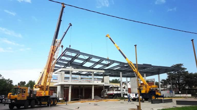 El pasado jueves se completó el montaje del techo de la nueva terminal de la ciudad, una obra importantísima para la gestión de la intendenta Stella Clérici, etapa que demanda una inversión entre materiales y mano de obra de 7,5 millones de pesos.