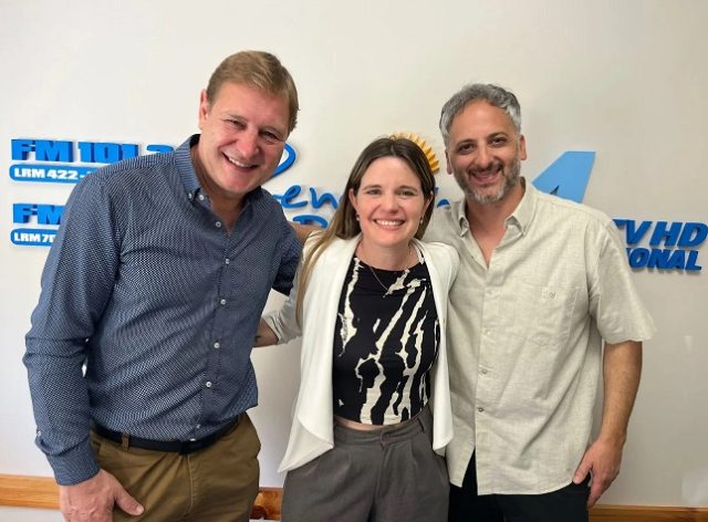 Esta mañana visitó los estudios de Renacer Regional, Caren Tepp, candidata a diputada nacional por Santa Fe (Fuerza Patria), quien llegó a Las Rosas acompañada por el concejal Marcos Di Santo y el presidente del PJ provincial Guillermo Cornaglia.