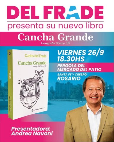 Carlos del Frade, periodista y actual diputado provincial presentará el próximo viernes, a las 19, su nuevo libro “Cancha Grande” (publicado por la editorial Fundación Ross) en la Pérgola del Mercado del Patio, ubicado en Santa Fe y Crespo.
