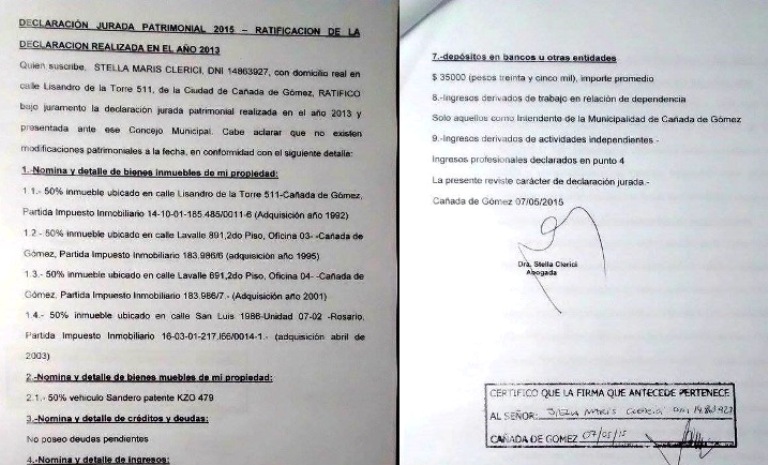 Chale aclaró que esta situación se repite en las DDJJ de la intendenta Clérici, la candidata a concejal y Secretaria de Gobierno Carina Mozzoni, y casi todos los funcionarios del gabinete municipal: Fabián Speca (secretario Legal y Técnico y esposo de Clérici), Gabriela Fanjul, Diego García (sec. de Hacienda), Antonella Genga (coordinadora de Promoción Comunitaria), Luis Leiva (coordinador de Seguridad), Julia Novello, y Natalia Ottaviani (subsecretaria de Hacienda).