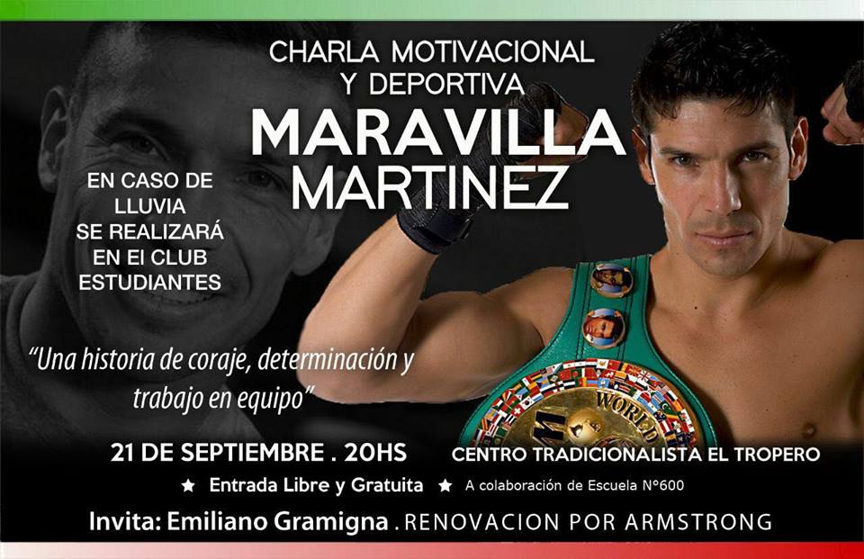 Maravilla Martínez abrió una puerta que estuvo cerrada durante años. Nos contara una historia de coraje, determinación y trabajo en equipo. El boxeo volvió a ser una fiesta: esa es la puerta que abrió, la que trae la inquietud y el griterío popular, las ganas de vencer, el deseo de todos en solo dos puños. Los de él, de Maravilla, que son los puños de la patria mientras dura la pelea. Un gladiador contra todas las fieras.