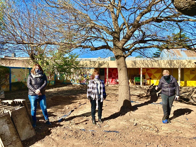A propósito de esto, con fondos de FAE ya se realizaron el recambio de aberturas en el salón que da al primer patio y otras remodelaciones. En estos momentos el Municipio está realizando un complejo tratamiento de raíces en el patio de juego, para luego proceder al recambio del hormigón, en este espacio emblemático de la escuela, utilizado por muchos niños y niñas.