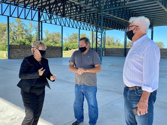 La intendenta Stella Clérici recorrió el parque industrial 2 donde avanza el montaje de una de las industrias que se radicará allí. Se trata de la de la fábrica de muebles de Carlos Oliva, que ya colocó el techo y trabaja en el cerramiento del galpón.
