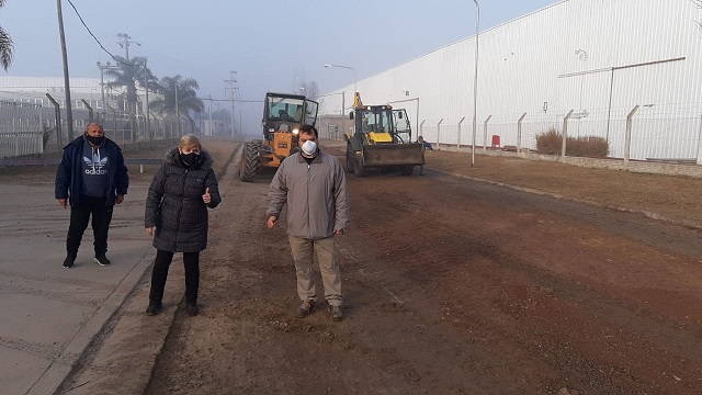 La intendenta Stella Clérici recorrió los avances de trabajos en el parque industrial, que incluyen recomposición de estabilizado en el ingreso y frente, junto con recalce de banquinas, tareas que se realizan con el esfuerzo conjunto de municipio con aportes de industriales.