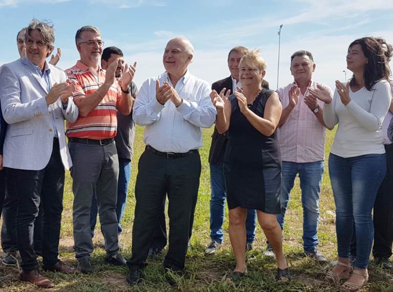 La intendenta Stella Clérici junto al gobernador provincial Miguel Lifschitz y parte de sus equipos de trabajo inauguraron la presa retardadora de crecidas cuenca Alem – cierre Sport Club, en la zona norte de la ciudad.