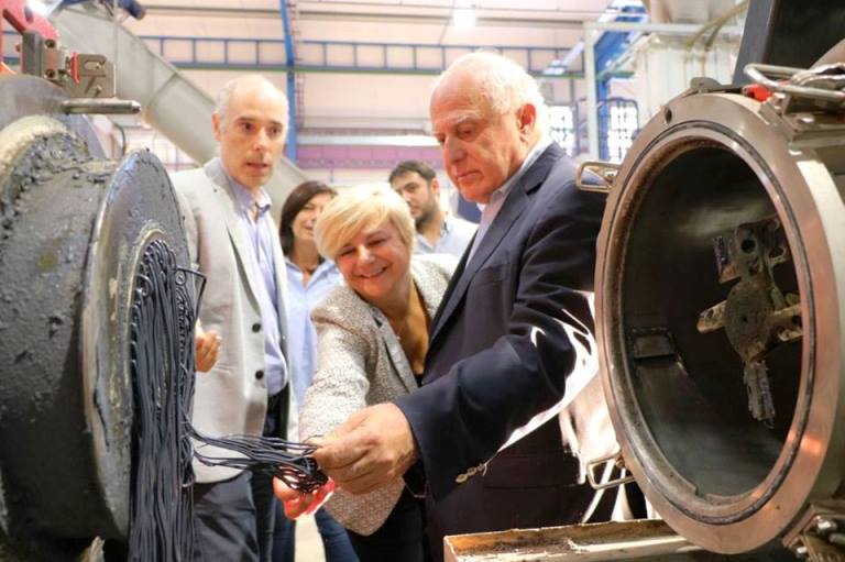 En el marco de la llegada a la ciudad de Miguel Lifschitz, visitaron la recicladora de plásticos que funciona en el Parque Industrial.