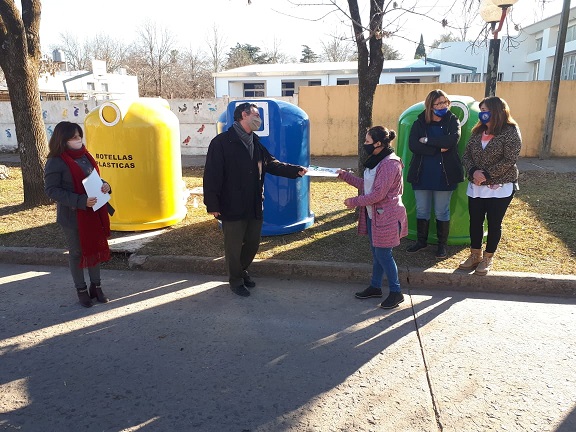 Dicha entrega se hizo en el marco de la presentación del nuevo kit de contenedores instalado frente a la Escuela N° 600 ya que Virginia es mamá de un alumno de 5° grado de la escuela e integrante de su Asoc. Cooperadora.