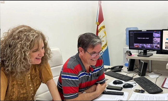 Hoy, el Intendente Javier Meyer y Alejandra Bruera se comunicaron a través de Skype con el Sindaco Di Matelica (Italia), Massimo Baldini.