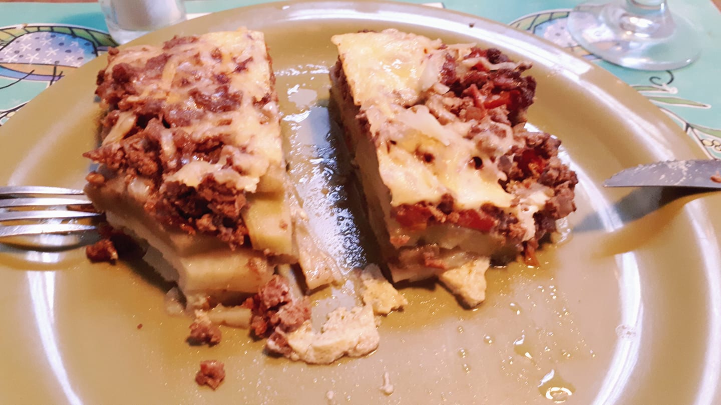 Y para poder invitar a mis afectos a seguir viajando conmigo, de la manera más vivencial que la distancia permite, aprendí a cocinar el musaka griego (o al menos una de las tantas variedades que Google me arrojó como tal). Encuentro en la cocina una metáfora muy linda sobre el llegar al interior de una persona, a su corazón, mediante algo elaborado con amor. Y las comidas étnicas, como los libros, tienen la facultad de llevarte lejos, sin moverte de tu silla.