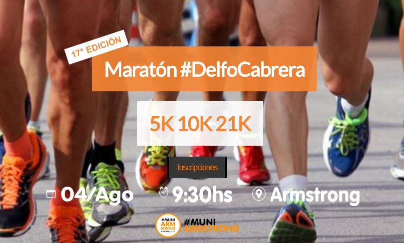 La Municipalidad de Armstrong organiza el 17º Maratón Homenaje a Delfo Cabrera en Distancias 10K y 21K competitiva y 5 K integrativa, el día 4 de agosto a las 09.30 hs.