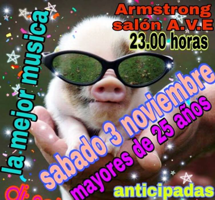 Los Chanchos Orejudos Team, a través de este medio reiteran la invitación para esta noche sábado 3 de Noviembre en en el salón grupo AVE de Armstrong, (Moreno y Delfo Cabrera) a partir de las 23 horas, estarán esperándote con la mejor música, animadores y muchas sorpresas.