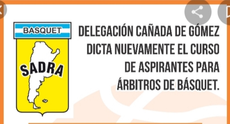 Mediante la Secretaría de Educación, Cultura y Deporte de la Municipalidad de Armstrong, S.A.D.R.A. Básquet Delegación Cañada de Gómez informa que se inicia el dictado del curso de aspirantes para árbitros asociativos de básquet.