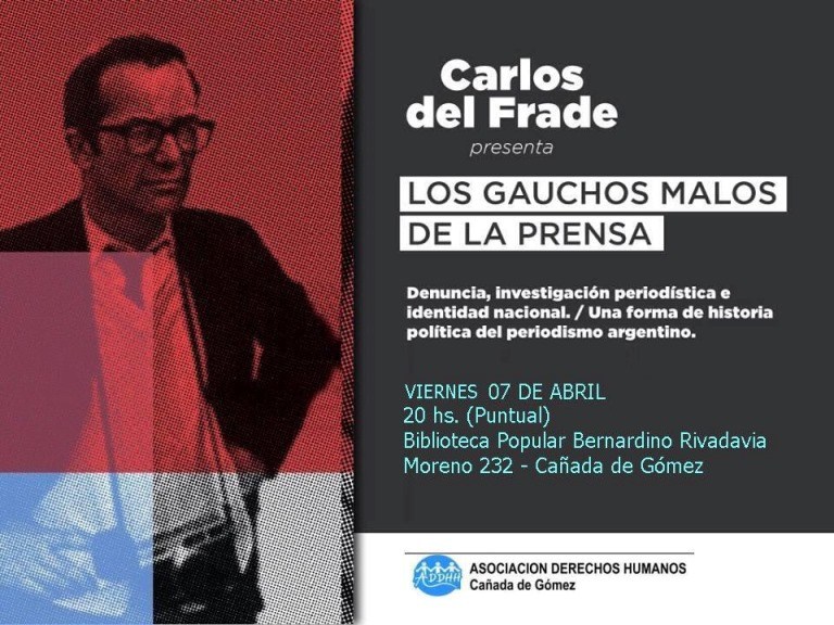 Carlos Del Frade presentará Los gauchos malos de la prensa» en la Biblioteca Rivadavia, Moreno 232, a partir de las 20 (puntual).