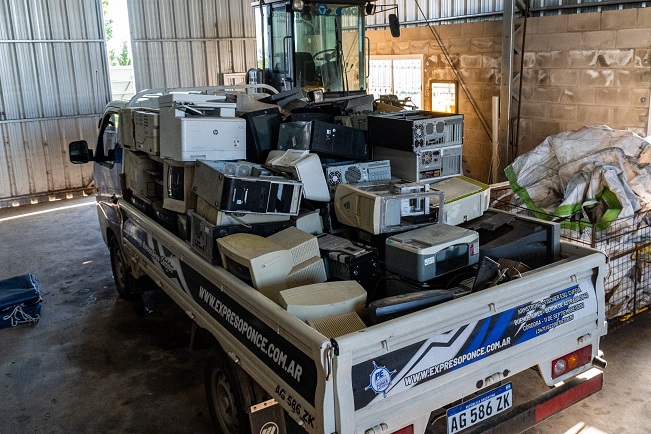 Desde la planta de reciclaje se despachó un transporte con más de 1000kg de residuos de aparatos electrónicos y eléctricos (RAEEs).