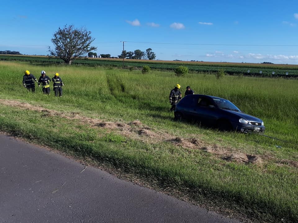 Los bomberos locales hicieron el trabajo de retirar el vehículo de la cuneta ubicándolo a la vera de la autopista para que la grúa lo lleve a su destino.