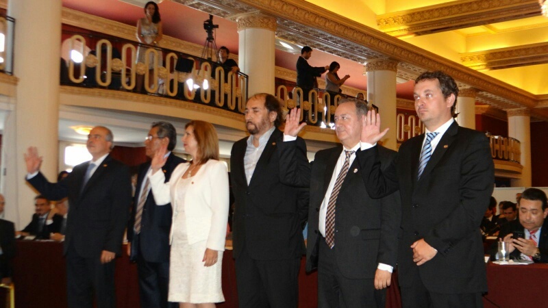Antes de la jura, llevada a cabo ayer, el ex intendente de Las Parejas participó de reuniones con sus pares del FPV en la sede del Parlasur y luego, en el local del Frente Amplio uruguayo, con legisladores de esa fuerza y del PSUV de Venezuela, el PT de Brasil, el Frente Guazú de Paraguay y el MAS de Bolivia.