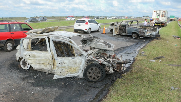 Un choque temprano este martes complicaba la circulación en la autopista Rosario-Córdoba. Dos vehículos chocaron y se prendieron fuego a la altura del arroyo Ludueña, en la mano hacia Córdoba. Trabajaban bomberos, policías y médicos. Hay un herido leve. Tránsito cortado desde el acceso de avenida Pellegrini.