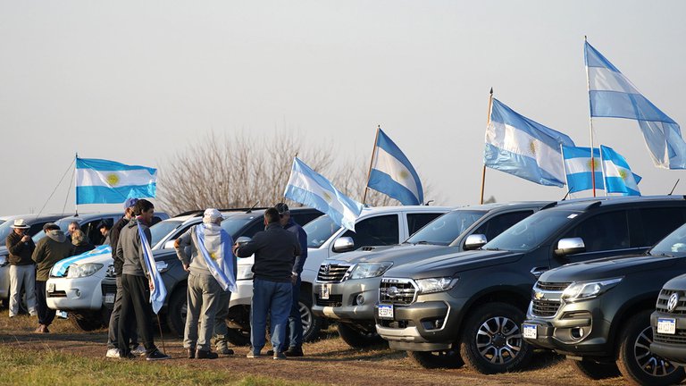 “En defensa del trabajo y la producción” fue uno de los eslóganes de la convocatoria. Hubo una larga lista de oradores, de más de una docena, y la mayoría de ellos no serán agropecuarios. Luego del cantar el Himno Nacional, los productores hicieron un minuto de silencio por las víctimas del covid-19.