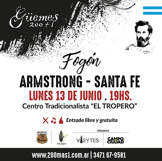 Lunes 13 de Junio, a las 19 hs, en el Centro Tradicionalista «El Tropero». Entrada libre y gratuita.