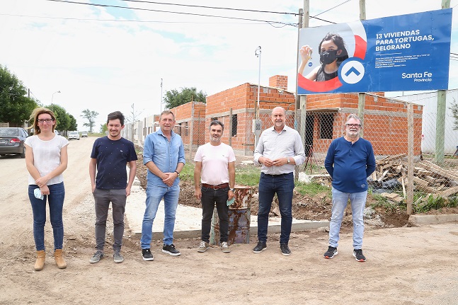 En Tortugas, el gobernador recorrió la obra de 13 viviendas que la provincia lleva adelante con un presupuesto de $35.942.966 y dijo que “esto que se ve aquí se da en todos los lugares de la provincia. Particularmente aquí hacía muchos años que no se hacían viviendas. Esto tiene que ver con ayudar a una localidad con mucho empuje y esfuerzo que va creciendo”.