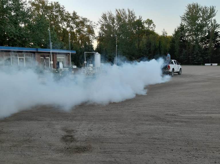 Es para control de mosquitos y larvas y se vienen realizando desde el comienzo de la temporada estival., enmarcados en la campa de lucha contra el dengue.