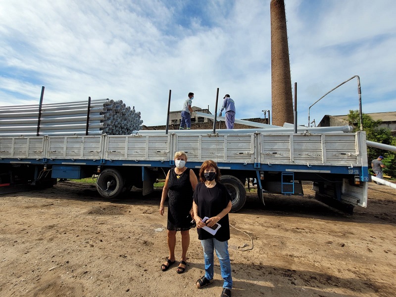 Luego de la aprobación de los convenios correspondientes, en la mañana de hoy llegaron los primeros 440 caños para el tendido de la obra “Red Cloacal Barrios La Loma y El Progreso – Redes Cloacales y Conexiones domiciliarias – Sector I, Sector II y Sector III”.
