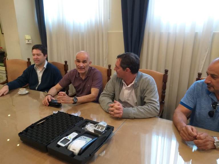 Los Sres. Armando Faraoni, funcionario del Ministerio de Seguridad de la Provincia de Santa Fe, y el Director de la Agencia Provincial de Seguridad Vial Ariel Minuet hicieron entrega de un alcoholímetro de última generación, cuyo valor es cercano a los 8.000 dólares.