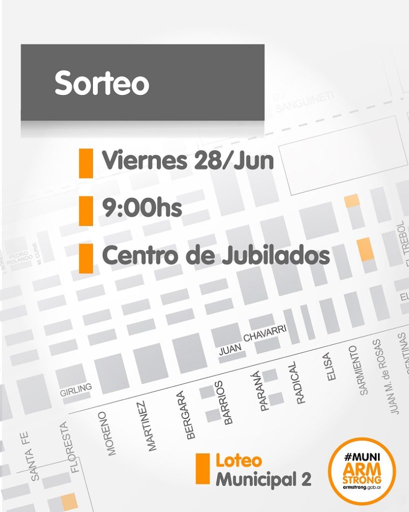 La Municipalidad de Armstrong informa que el día viernes 28 de junio a las 9 hs se realizará el sorteo