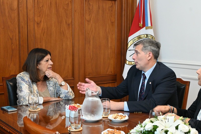 La presidenta de la Cámara de Diputadas y Diputados, Clara García, recibió el proyecto de Ley de Presupuesto 2025 de manos del ministro de Gobierno, Fabián Bastía; y de su par de Economía, Pablo Olivares. Fue en el marco de un encuentro del que también participaron el vicepresidente primero del organismo legislativo, José Corral; y la vicepresidenta segunda, Sonia Martorano.