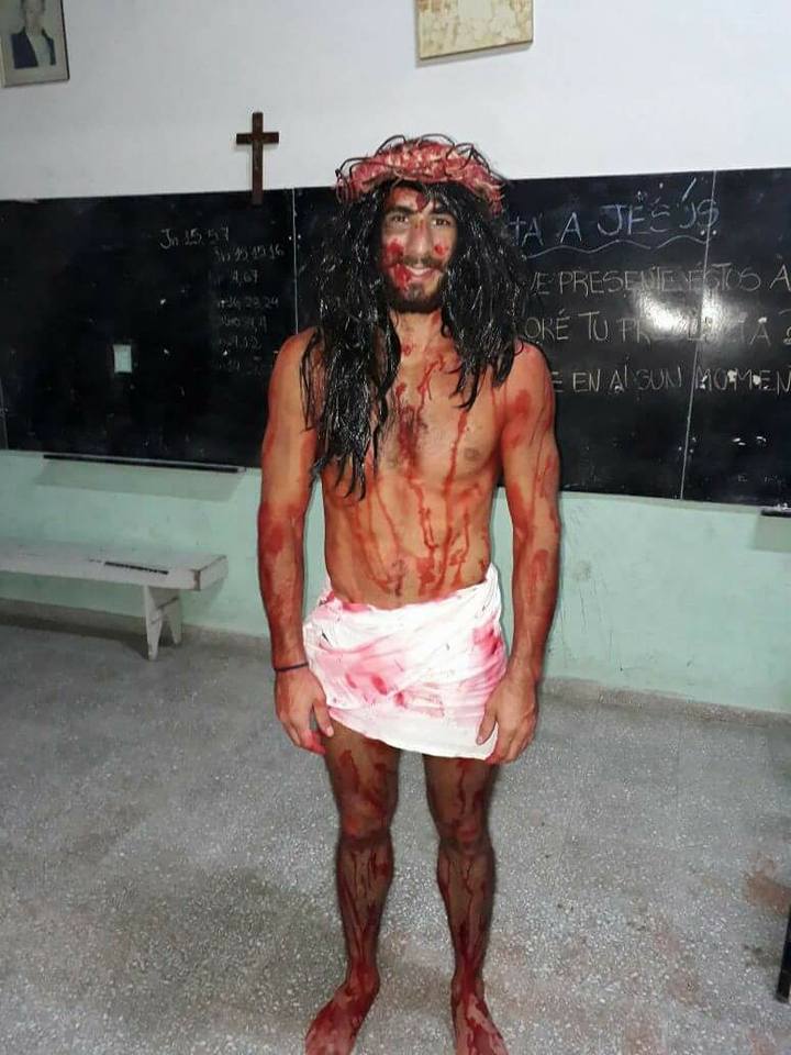 La escenificación del Vía crucis se realizó el pasado Viernes Santo en la Plaza San Martin, frente a la iglesia Nuestra Sra. De la Merced, estuvo protagonizada principalmente por jóvenes y adultos. La imagen de Jesucristo la encarno Ivan Britos un joven armstronense de 23 años de edad.