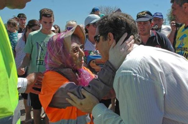 Más de un centenar de personas la estaban esperando en la intersección de la Ruta 15 y Ruta 9, entre ellas funcionarios, y la autoridad máxima de Armstrong Dr. Pablo Verdecchia le dio la bienvenida.
