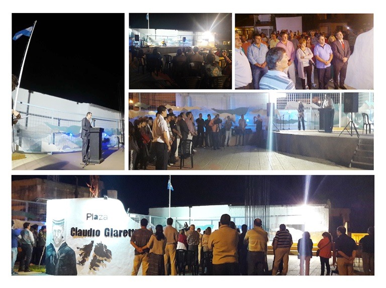 A las 00:00 hs del 2 de abril se entonaron las estrofas del Himno Nacional Argentino. Con mucha atención y emoción se escucharon las palabras del ex combatiente Daniel Chiarla, de Mauricio Giaretti, uno de los hermanos de Claudio, y del Sr. Intendente Dr. Pablo Verdecchia quien dijo: “Hablar de Malvinas es hablar de una parte de la historia que aún no ha cerrado, es hablar de simbolismo y sentimiento nacional, más allá de un archipiélago es, por sobre todas las cosas, hablar de identidad argentina… Porque Malvinas es sentir, es dolor. Malvinas es Memoria. Es reafirmar nuestra identidad nacional, es pensar en el otro, en quien puso su cuerpo y su coraje para defendernos del enemigo, es honrar a quienes dejaron todo allá sobre las islas. Malvinas es también esperanza y aprendizaje…”