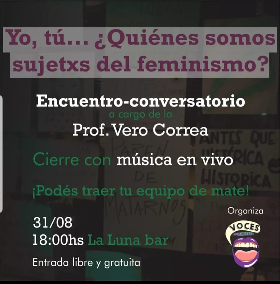 El grupo «Voces Feministas» invita a todas las mujeres a participar de un encuentro sobre feminismo, donde van a hablar sobre la historia del movimiento con la profesora Verónica Correa. La invitación es para el sábado 31 a las 18 hs. en el bar «La Luna», se va a contar con un cierre musical.