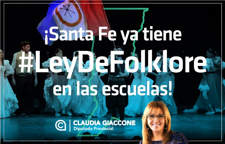 En la sesión del 28 de noviembre, el proyecto de la diputada provincial Claudia Giaccone, -que contaba con media sanción de Diputados- fue aprobado por la Cámara de Senadores de Santa Fe y de esa manera se establece por Ley la Incorporación de la Enseñanza del Folklore en las Escuelas Primarias y Secundarias de nuestra provincia.