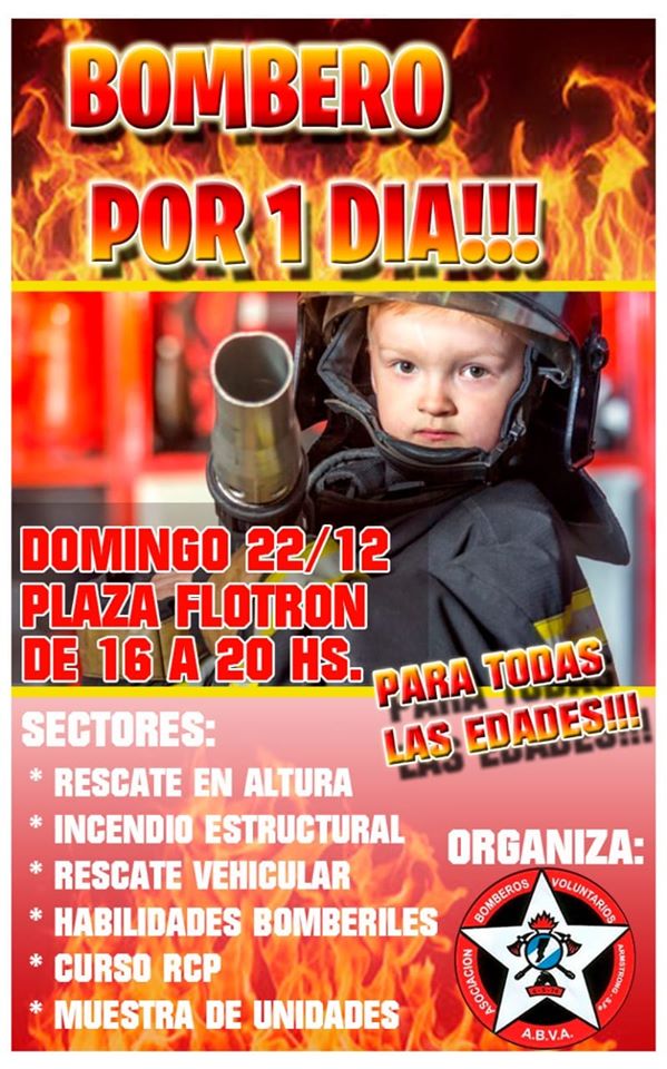 El próximo domingo 22 se estará realizando en plaza Flotron el «Bombero por un día».