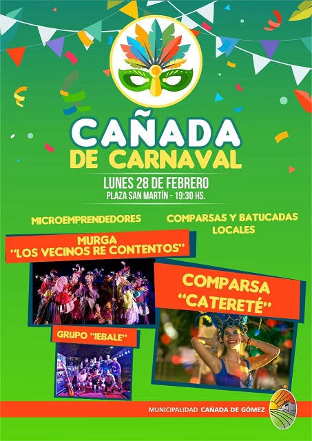 La ciudad tendrá un nuevo año los festejos de carnaval impulsados por la gestión municipal, con la participación de comparsas de la ciudad y música este lunes 28 de febrero desde las 19.30 hs en Plaza San Martín.